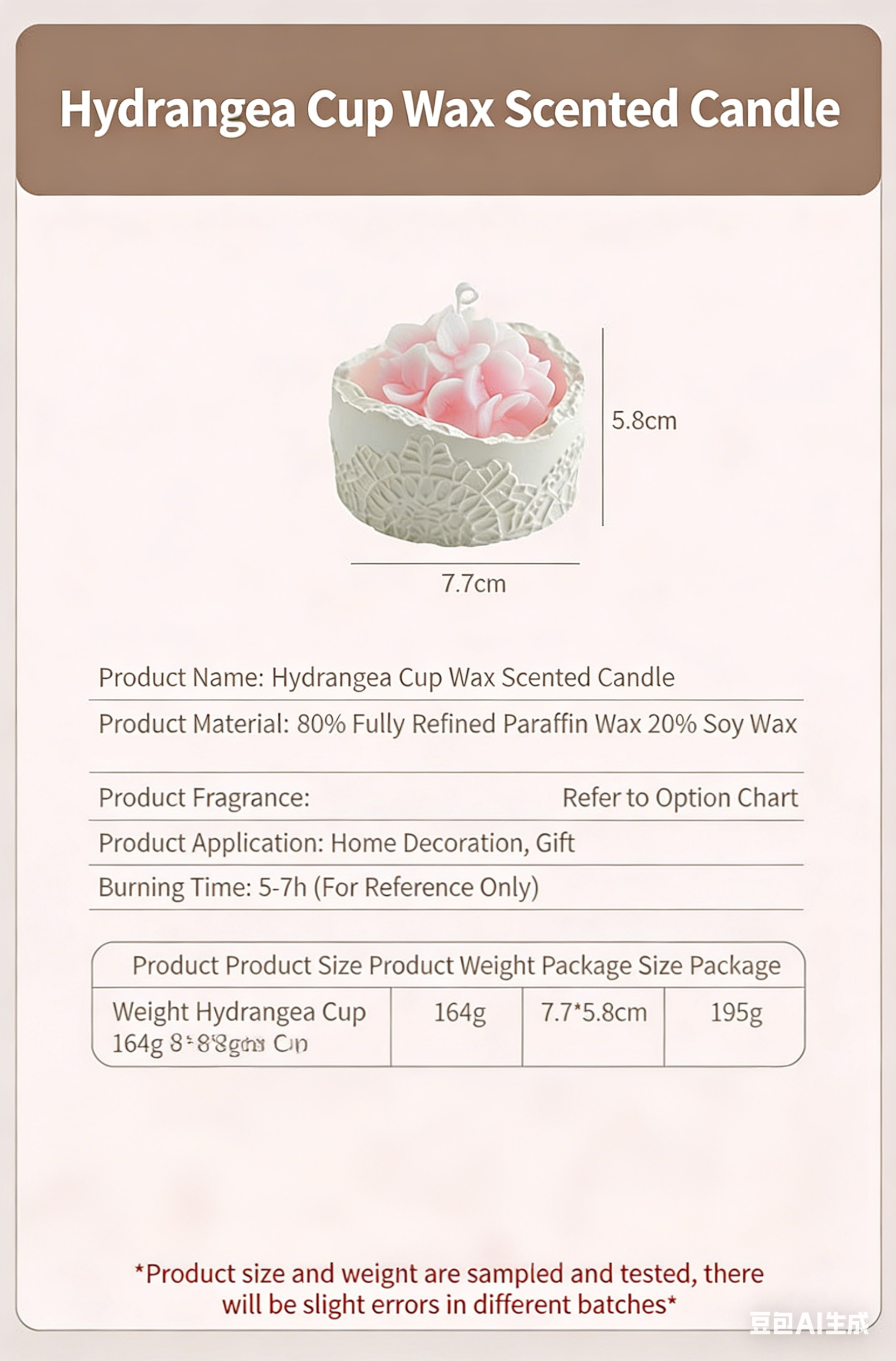 Hydrangea Cup Handmade Aromatherapy Candle | Atmospheric Decor Piece | Valentine's Day Gift | Fragrance Party Favor